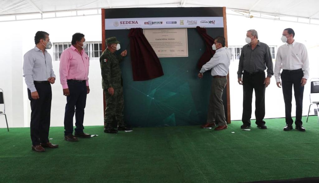 Jiménez.- “Estamos convencidos, que la mejor estrategia en materia de seguridad ha sido y seguirá siendo nuestra alianza con el Ejército Mexicano”, enfatizó el gobernador Miguel Ángel Riquelme Solís al inaugurar el Cuartel Militar que será base de operaciones en el municipio de Jiménez.