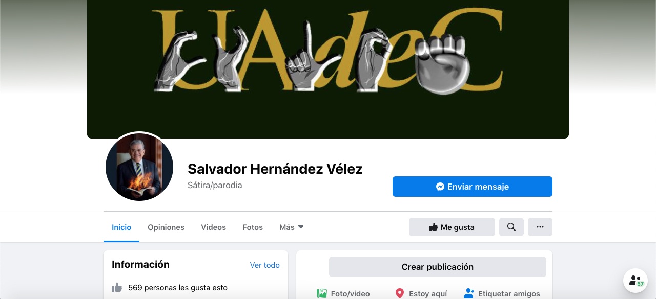 La Universidad Autónoma de Coahuila informó, a través de un comunicado, que en la red social de Facebook se encuentra un perfil falso del rector de la UA de C, Salvador Hernández Vélez, en el que difunden comentarios y publicaciones que él no ha emitido; esta página de sátira y parodia, creada desde el 16 de marzo de 2020 con el usuario https://www.facebook.com/Salvador-Hernández-Vélez-100705921572233/, está suplantando la identidad del rector de esta Universidad.