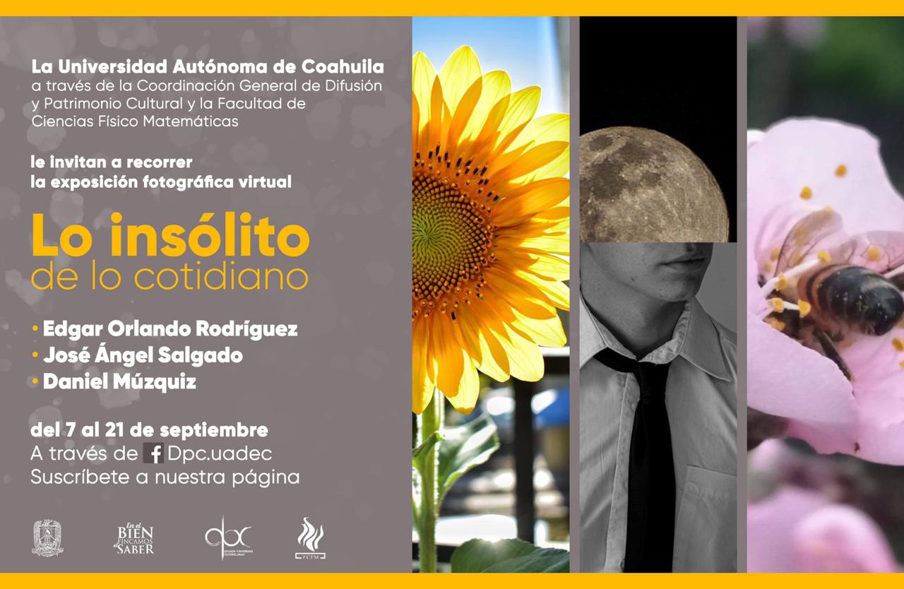 La Universidad Autónoma de Coahuila a través de la Coordinación General de Difusión y Patrimonio Cultural, invita a la comunidad universitaria y al público en general, a la exposición fotográfica virtual “Lo insólito de lo cotidiano”.