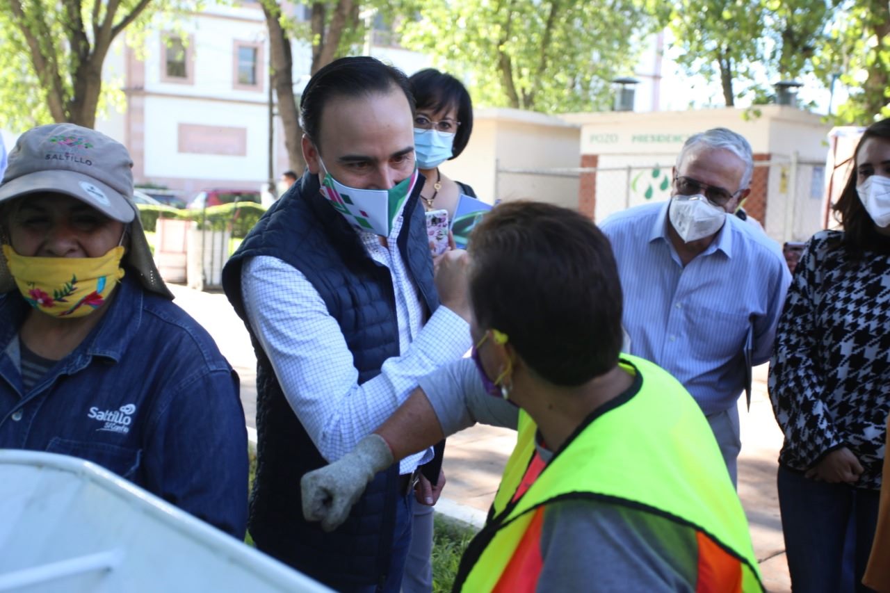 El alcalde Manolo Jiménez Salinas, acompañado por Eglantina Canales, secretaria del Medio Ambiente en Coahuila, supervisó personalmente el funcionamiento de las máquinas recicladoras.