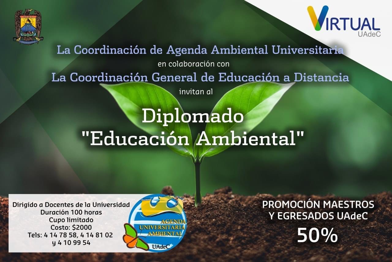 La Universidad Autónoma de Coahuila, a través de la Coordinación General de Educación a Distancia y la Agenda Universitaria Ambiental, convoca a los docentes a cursar el diplomado de Educación Ambiental en Línea, que iniciará el próximo 28 de septiembre.