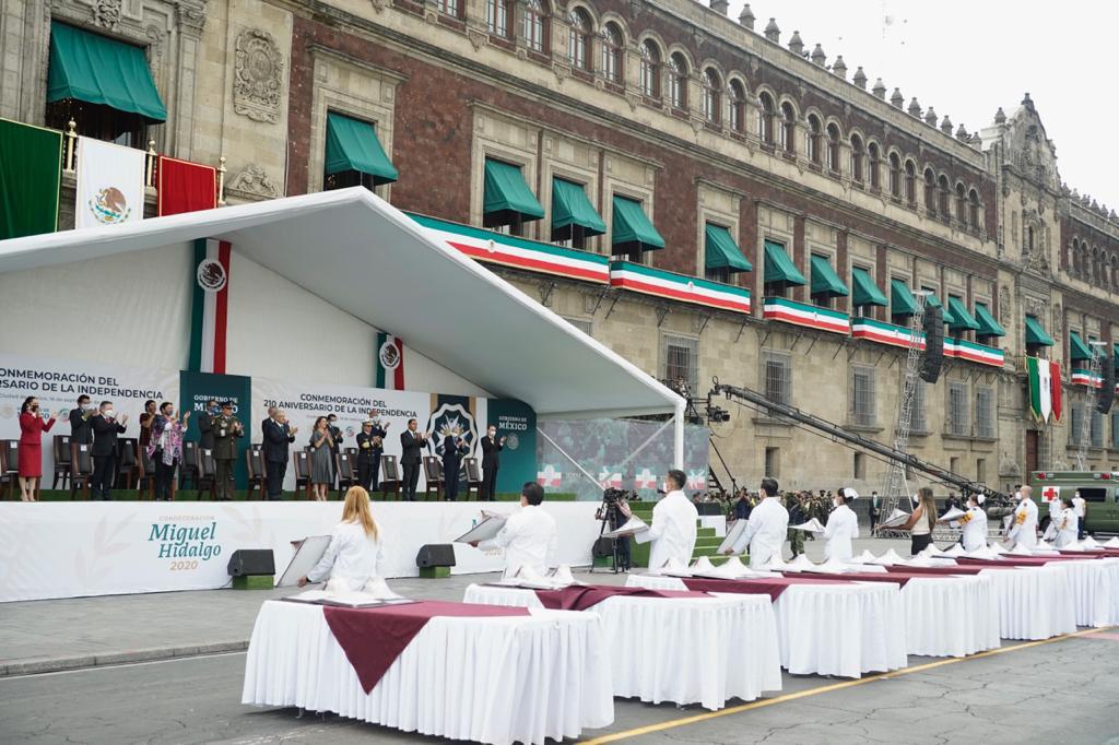 A las 12:00 horas en punto de este miércoles el presidente de México, integrantes del presídium y asistentes a la ceremonia ofrecieron un minuto de silencio en memoria de las personas fallecidas por COVID-19, y acto seguido el reconocimiento con aplausos al personal de salud que continúa enfrentando la emergencia sanitaria.