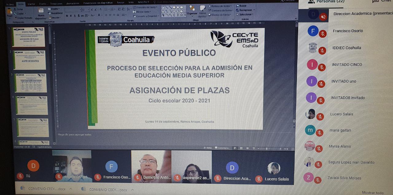 Ramos Arizpe. – El Colegio de Estudios Científicos y Tecnológicos del Estado de Coahuila (CECyTE) realizó el evento de asignación de plazas del proceso de selección para la admisión en Educación Media Superior Ciclo 2020-2021.