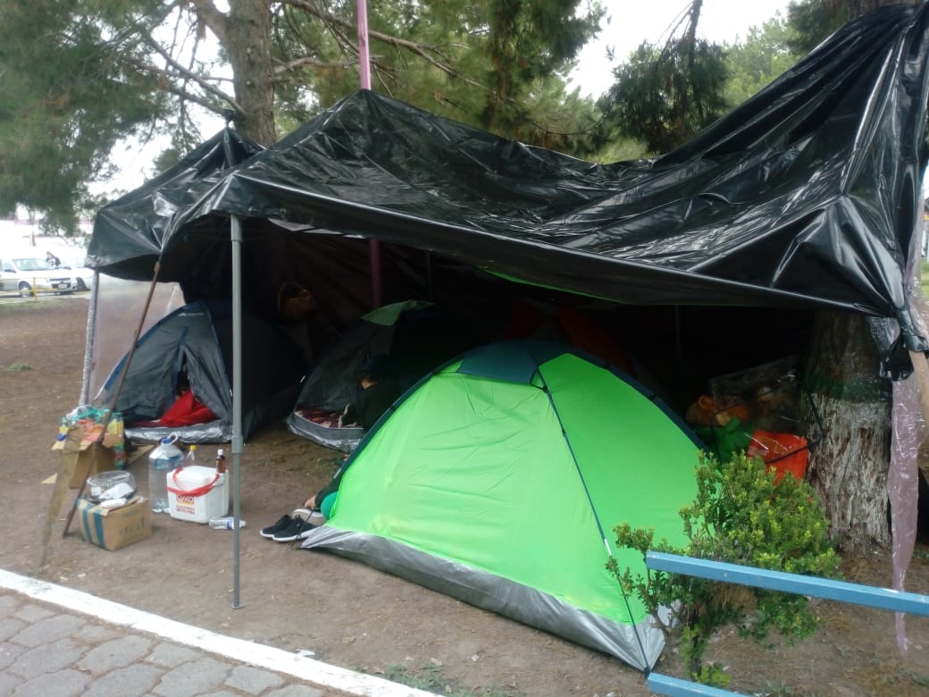 Luego de ser desalojados del albergue de dicho hospital por un caso positivo de Covid-19, decidieron acampar al exterior para estar al tanto de la salud de sus hijos