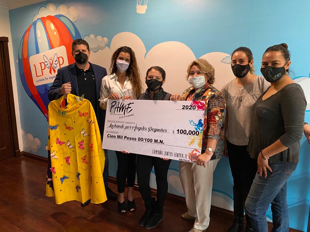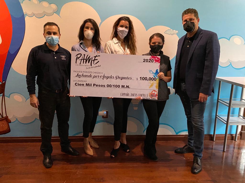 En las instalaciones de “Luchando por Ángeles Pequeños”, que preside Nayeli Pérez Negrón, la presidenta de PAME, Silvia García Rojas, así como el Country Manager de Tupy, Adrián García Morales, hicieron la entrega de un cheque de 100 mil pesos, el cual es el resultado de un trabajo que inició en el mes de julio.