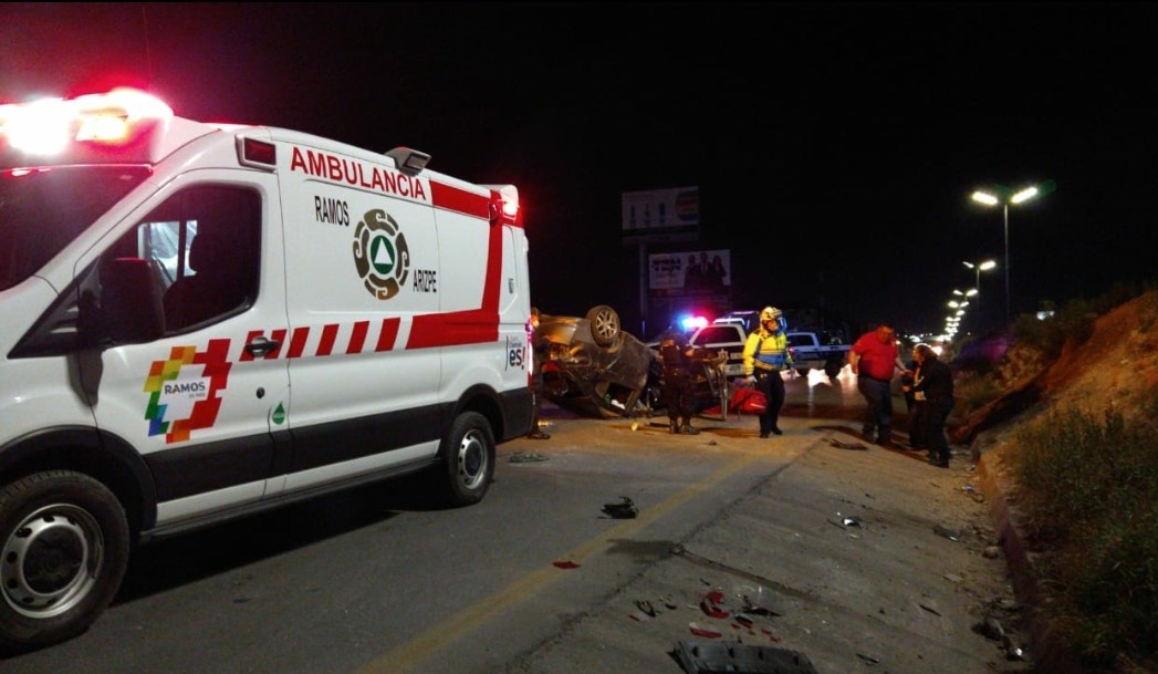 Una mujer resultó lesionada la madrugada de este jueves luego de que volcara su automóvil sobre la carretera Monterrey –Saltillo a la altura de la empresa DeAcero en Ramos Arizpe.