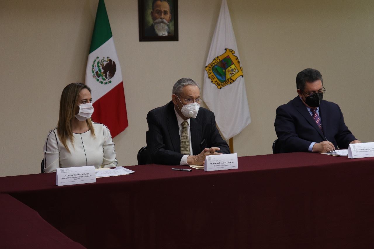 También presente la Dirección General de Prevención y Combate a la Corrupción y la Fiscalía Especializada en Delitos por Hechos de Corrupción en el Estado, así como los maestros Benito Carmona Rodríguez, Guillermo García Amador y Rogelio de Santiago Tallabs, con la representación de las Secciones 5, 35 y 38, del Sindicato Nacional de Trabajadores de la Educación, respectivamente.