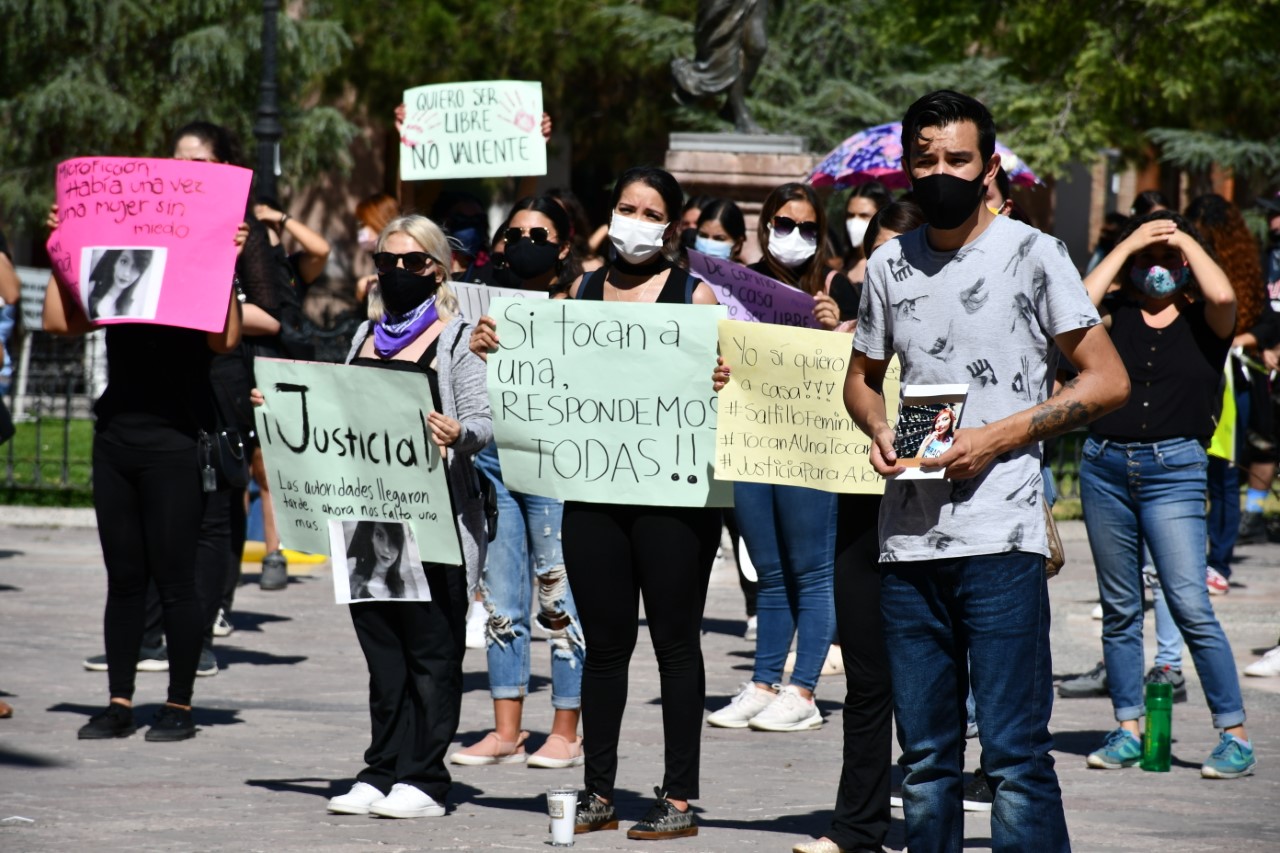 Al grito de ¡ni una asesinada más!, el Frente Feminista de Saltillo, en compañía de diversos colectivos locales afines a la causa, se manifestaron la tarde de domingo en Plaza de Armas, exigiendo justicia por el feminicidio de la joven Alondra Elizabeth, cuyo cuerpo fue encontrado el sábado en una vecindad de la colonia Lamadrid con huellas de violencia.