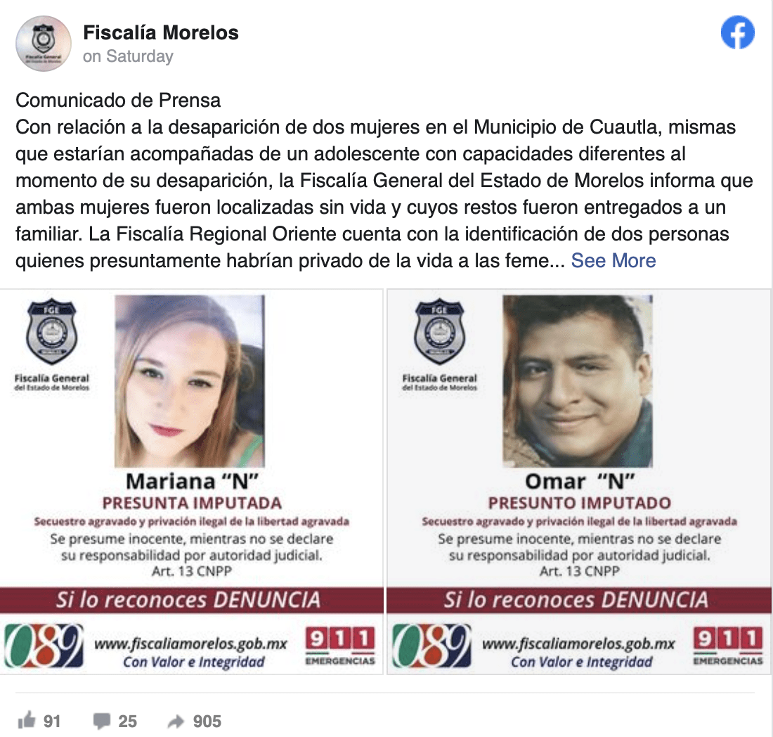 El caso cobró relevancia este fin de semana debido a que la FGE anunció el sábado que ya buscan a dos sospechosos de cometer el crimen: se trata de Mariana “N”, quien era amiga de Sara, y Omar “N”, quienes presuntamente asfixiaron a las víctimas.