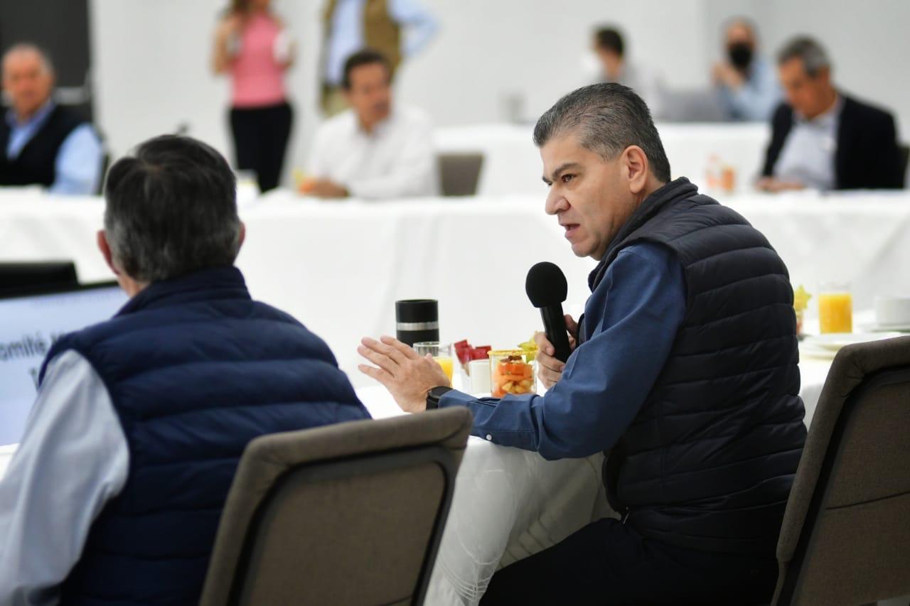 Torreón, Coah.- El gobernador Miguel Ángel Riquelme Solís se reunió con los empresarios integrantes del Comité Técnico del Impuesto Sobre Nóminas en la Laguna y les planteó la propuesta de realizar diversas obras de trascendencia sobre los ejes de conectividad, infraestructura vial y servicios a partir de 2021, por un monto de alrededor de 800 millones de pesos y que previo consenso con los empresarios, podría financiarse bajo el esquema de Asociación Público-Privada (APP).