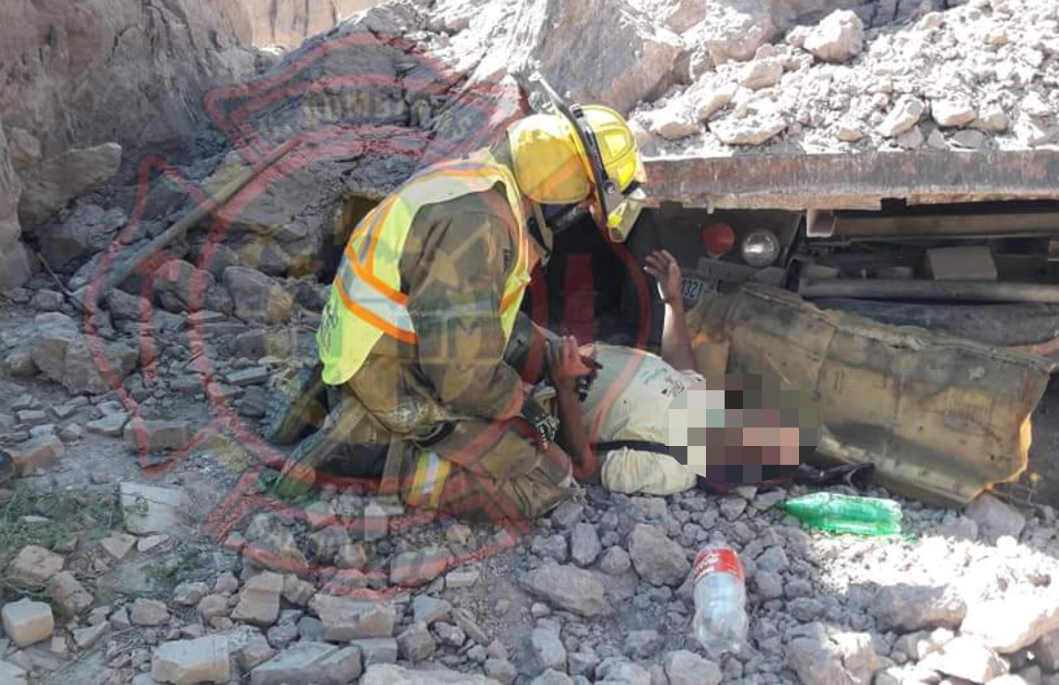Personal de Bomberos Saltillo llevaron a cabo el rescate de un hombre de 58 años de edad quien quedó atrapado por un alud de piedras y tierra, tras registrarse un derrumbe en un barranco donde se encontraba laborando, mismo que se ubica en la colonia Héroe de Nacozari, del sur poniente de ésta capital.
