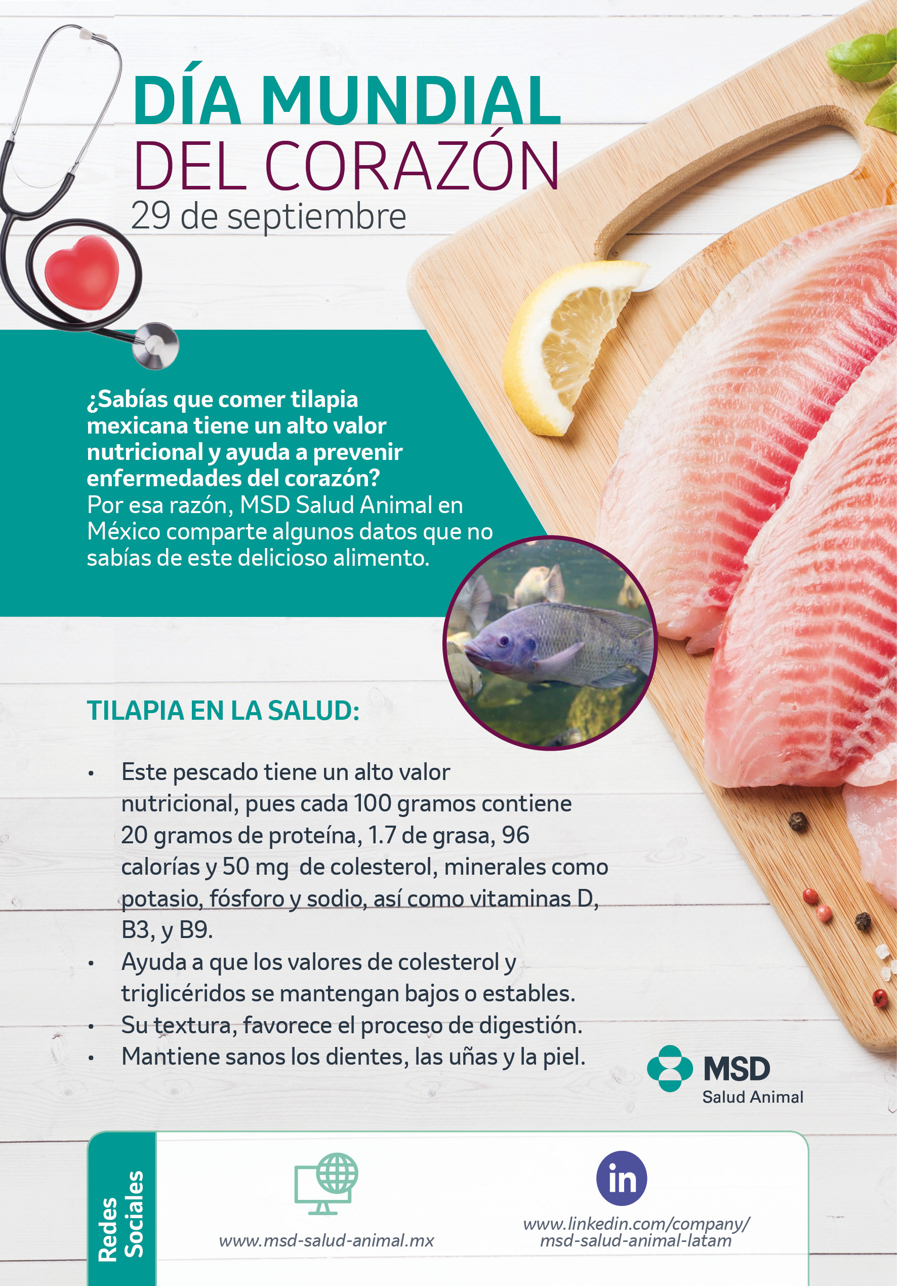 “Cuidar nuestra calidad de vida, incluye nuestra alimentación. La Tilapia Mexicana, es un alimento con alto valor nutricional que debe ser parte de una dieta balanceada de cualquier persona, es una carne blanca, magra con un gran abanico de nutrientes que aportan muchos beneficios para nuestro cuerpo”, señaló Alim Castillo, Gerente de Cuentas Clave de Acuicultura de MSD Salud Animal en México