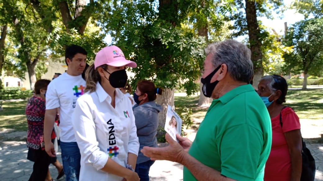 La candidata por el Partido Revolucionario Institucional (PRI) en el distrito XII, Edna Dávalos Elizondo, continúa recorriendo los cuatro municipios por los que contenderá este próximo 18 de octubre. En esta ocasión visitó el municipio de Parras de la Fuente, donde sostuvo reuniones con familias de la zona centro. El mensaje fue claro, defender el agua del municipio, tener instalaciones y servicios dignos en materia de salud así como atraer al distrito 12 empleos mejor remunerados.