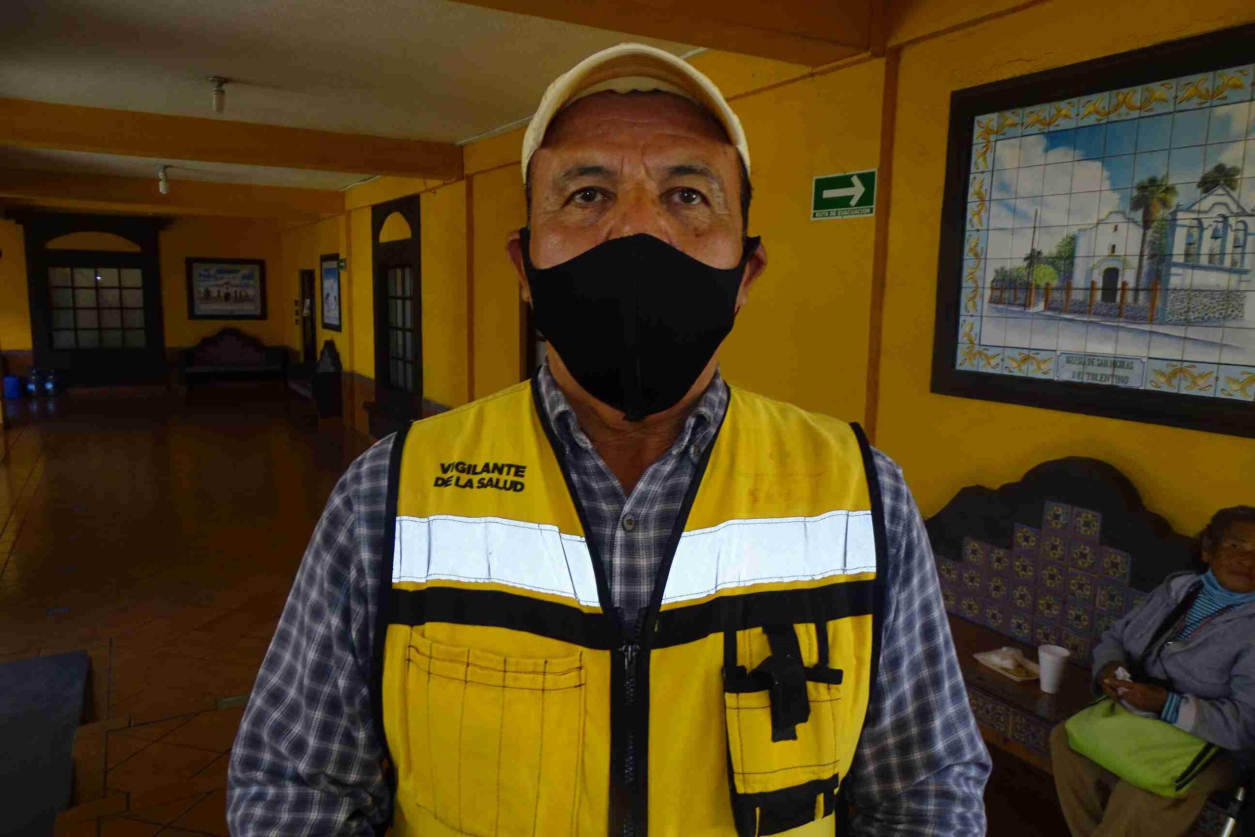 “Estamos entre cuatro a cinco horas en la zona centro repartiendo lo cubre bocas que tratamos de darle a la gente que todavía no lo porta todo el tiempo. Ahorita en los recorridos del centro somos siete inspectores de la salud los que apoyamos en esta tarea” expuso. (EDUARDO SERNA)
