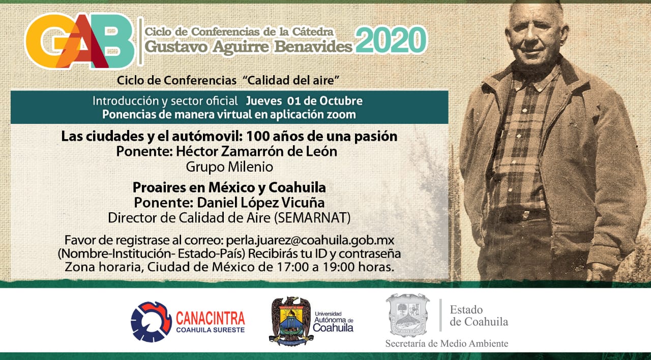Todos los jueves del mes de octubre se llevará a cabo el ciclo de conferencias de “Gustavo Aguirre Benavides”, el tema central de este año es “Calidad del Aire”.