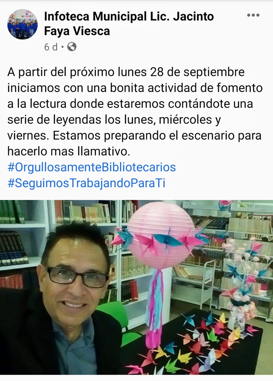 La dependencia informó que los videos ya están siendo reproducidos por usuarios a través de la página de Facebook de la “Infoteca Lic. Jacinto Faya Viesca”.