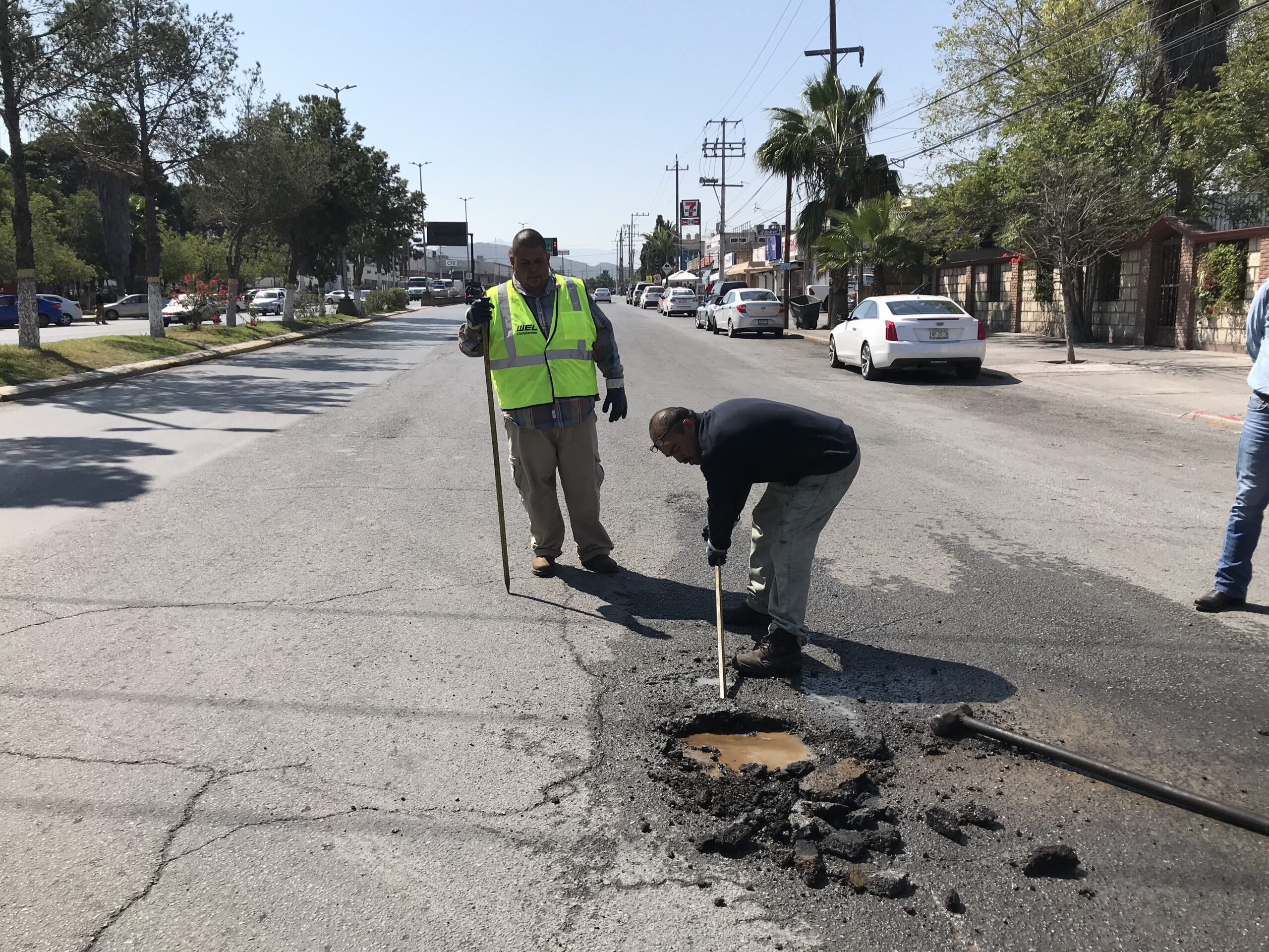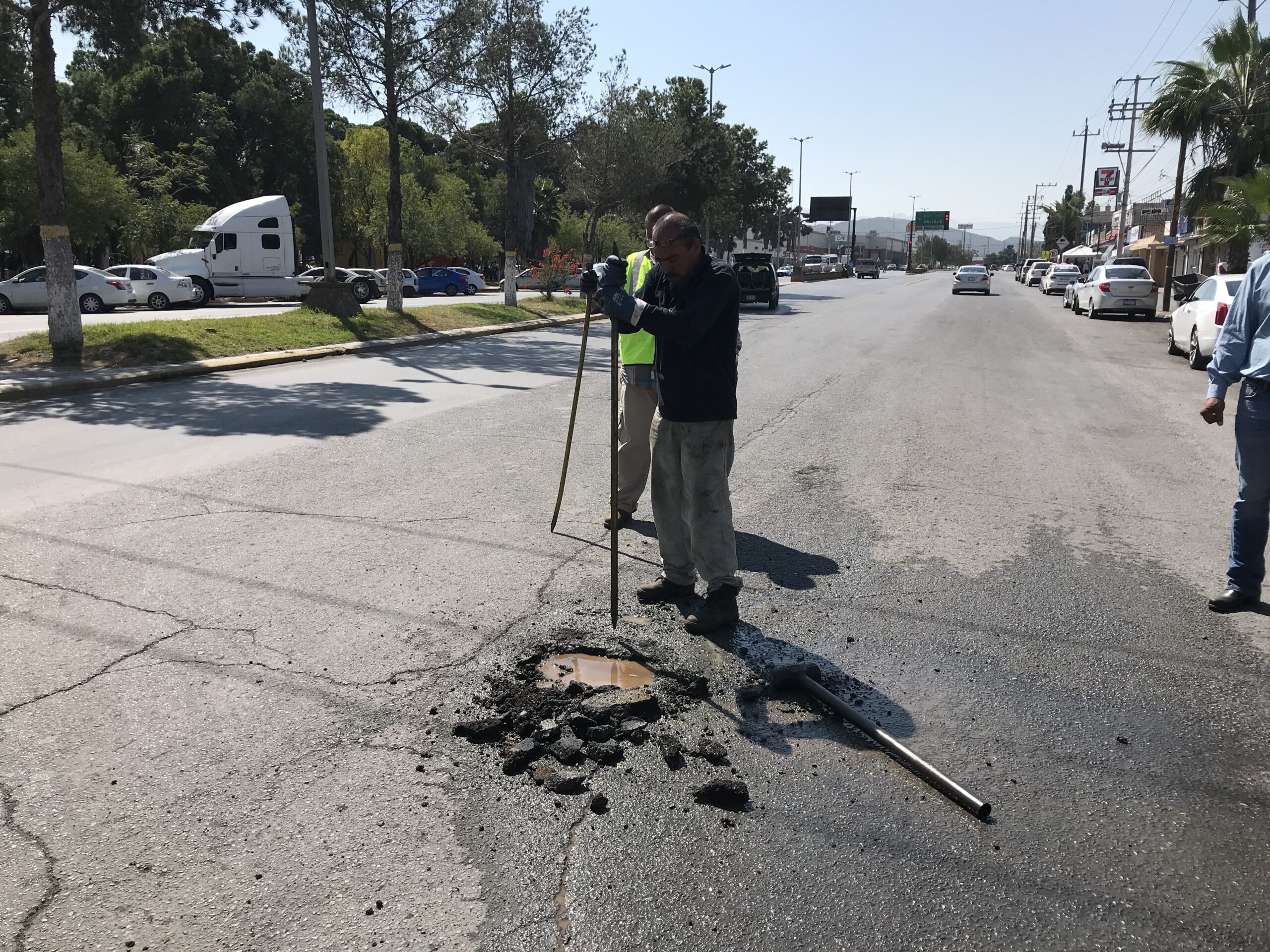 El gerente general Eduardo Valdez Cuellar llegó al lugar en compañía de una cuadrilla y detalló que el azolve en la red de drenaje en este punto hizo que el nivel del agua saliera de la carpeta asfáltica generando olores desagradables.