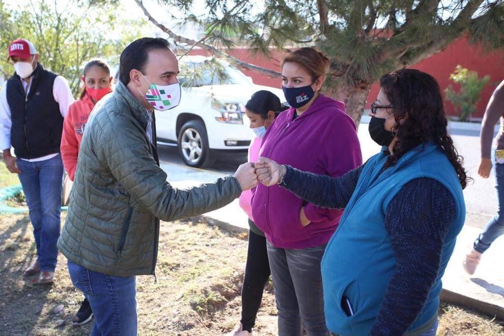 El alcalde de Saltillo, Manolo Jiménez Salinas, acudió a las colonias Zaragoza y Lomas del Bosque para supervisar los trabajos que se llevan a cabo en la segunda etapa del programa Mi Plaza, mi Casa, el cual se realiza con el apoyo del gobernador Miguel Ángel Riquelme Solís.