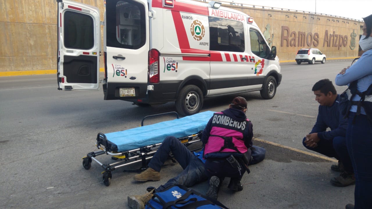 Al lugar acudieron elementos de Protección Civil y Bomberos de Ramos Arizpe quienes argumentaron que la persona del sexo masculino presentó golpes, así como raspones, luego de los primeros auxilios la persona fue trasladada en código amarillo a la clínica 88 del Seguro Social. (EDUARDO SERNA).