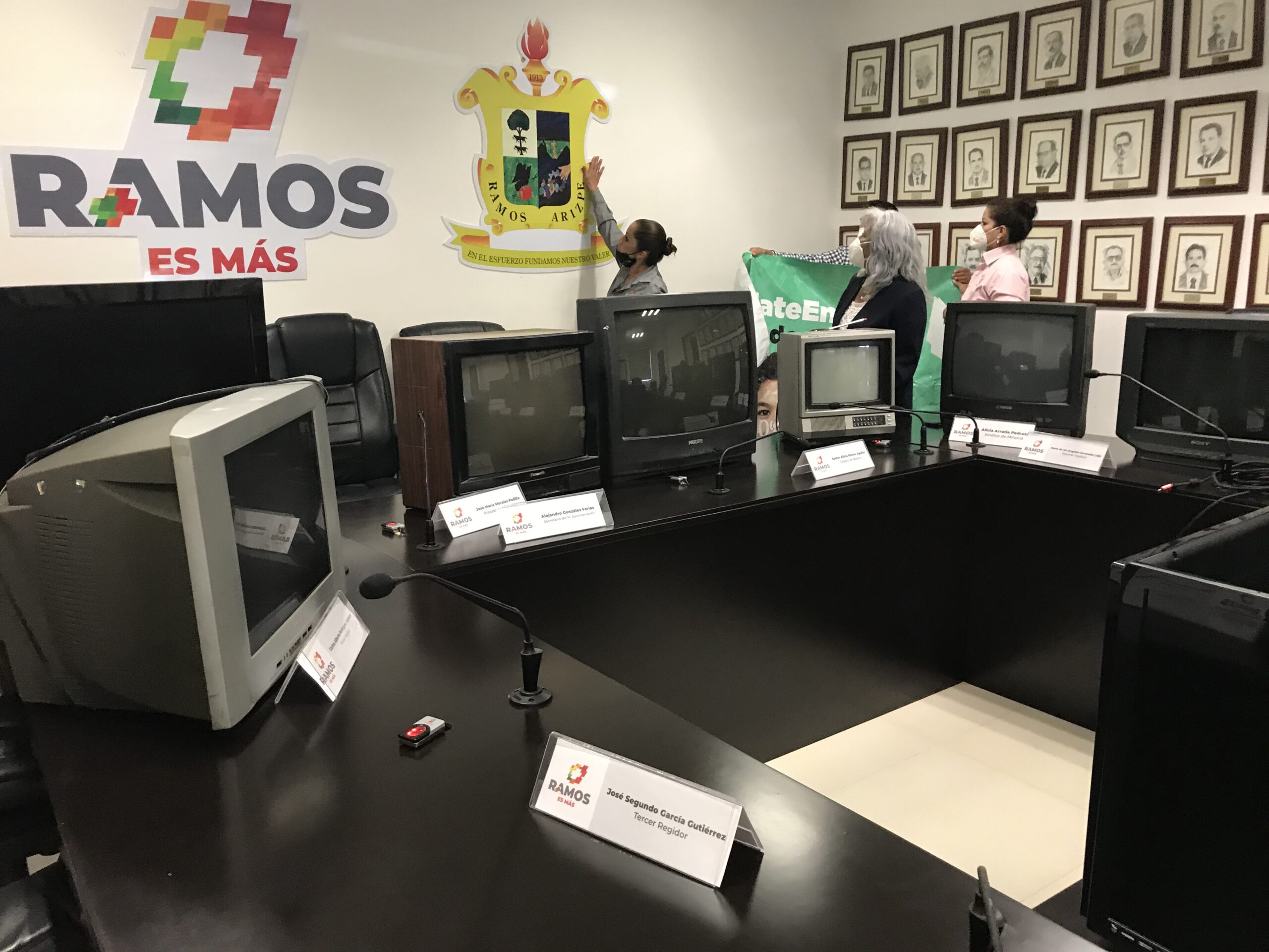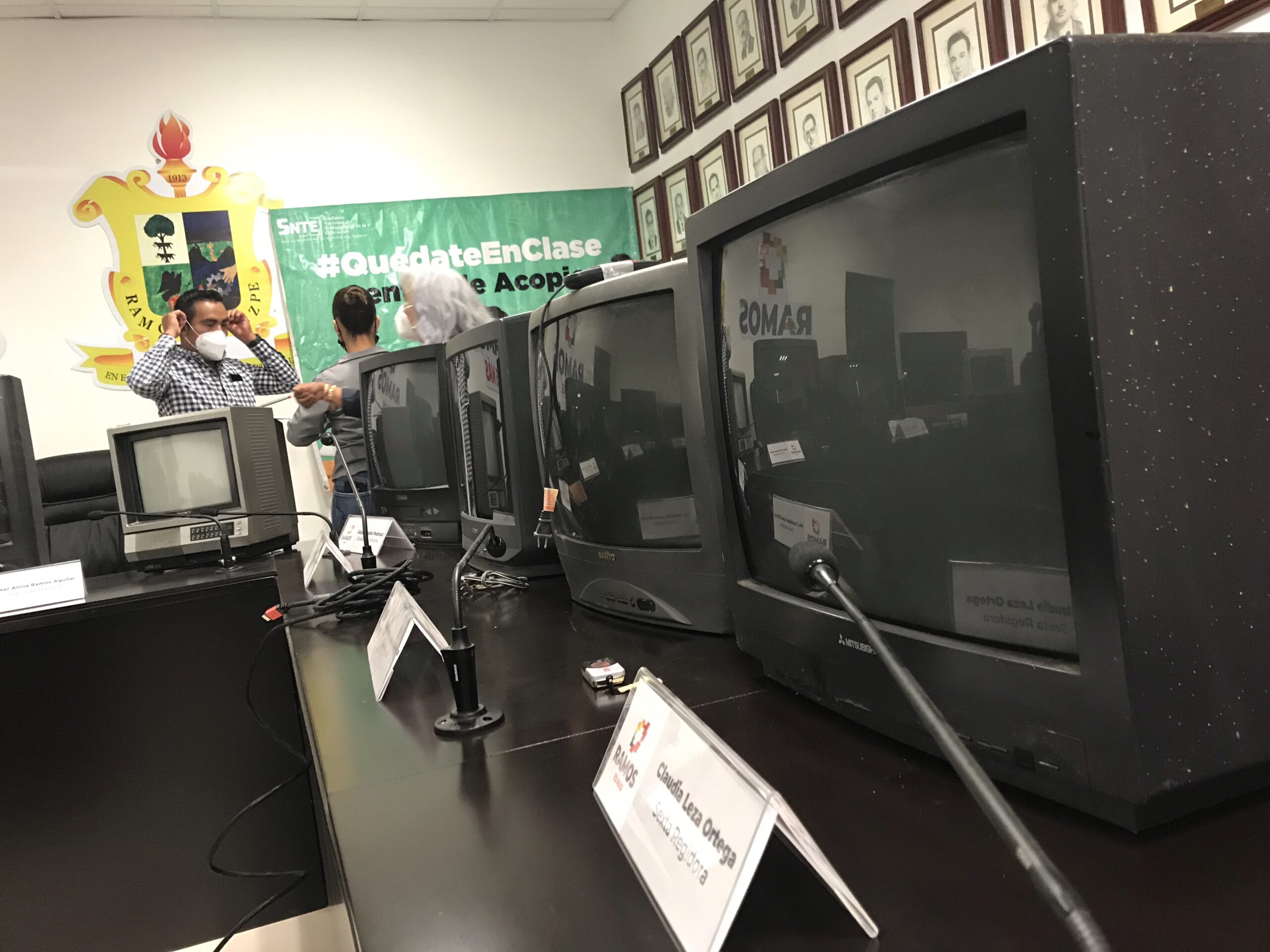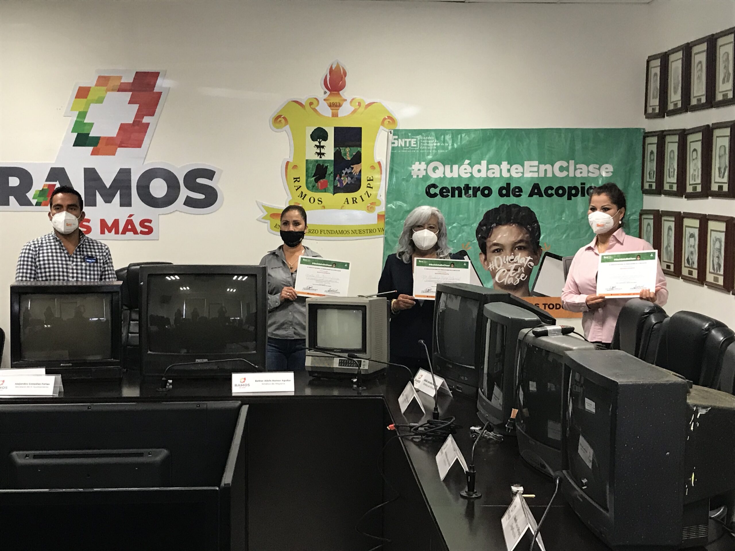 María Guadalupe López Villarreal, regidora en Ramos Arizpe y responsable de la comisión de educación en el cabildo, convocó a integrantes de la Sección V del Sindicato Nacional de Trabajadores de la Educación (SNTE) para hacer la entrega de 8 televisores en como parte de la campaña nacional “Quédate en Clase”.