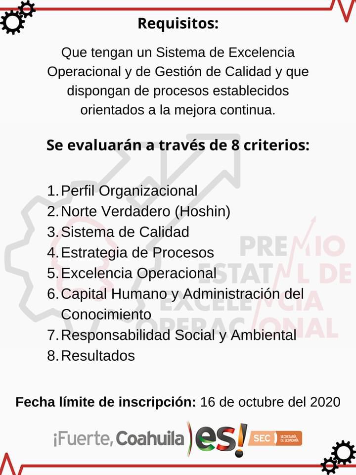 Hasta el momento, la Secretaría de Economía del Estado contabiliza más de 20 empresas interesadas en participar en la Primera Edición del Premio de Excelencia Operacional, cuyo registro vence este viernes 16 de octubre.