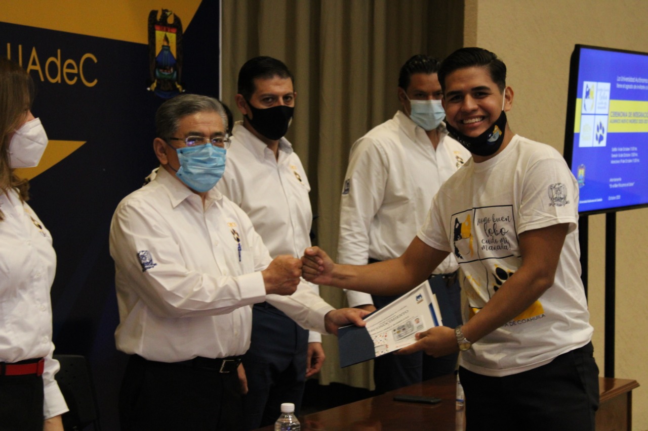 De la Facultad de Contaduría y Administración a Iván Alvarado Serna; Paola Domínguez Moreno, Karen Guadalupe Reyes Flores y Jaime Iván Leija Solís; de la Escuela de Artes a Ana Luisa Orozco Hernández y de la Facultad de Administración Fiscal y Financiera e Javier Guadalupe Tonche Santoyo y Christopher Isaac Favela López.