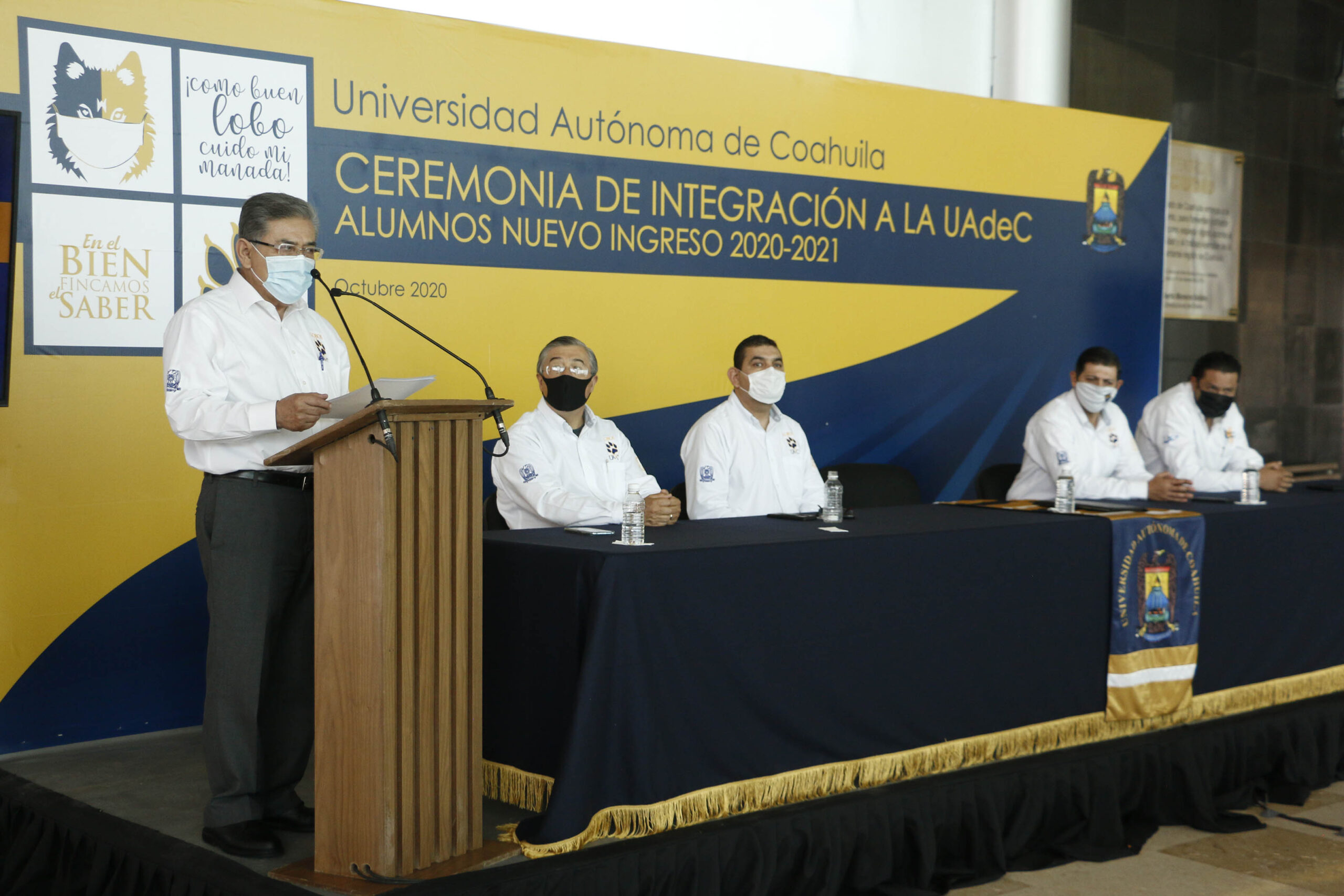 Monclova.- Los alumnos de nuevo ingreso de la Unidad Norte de la Universidad Autónoma de Coahuila que obtuvieron el puntaje más alto en el examen de admisión para el semestre agosto-diciembre 2020, recibieron reconocimientos durante la ceremonia de integración que se llevó a cabo este lunes en la ciudad de Monclova.
