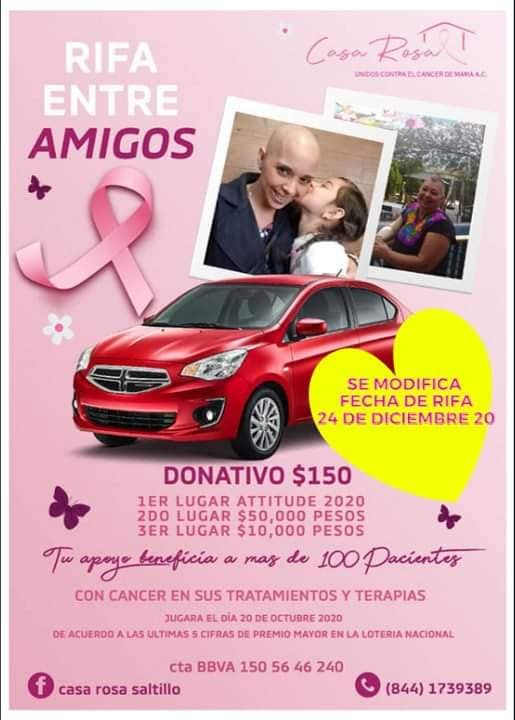 Dijo que los interesados en participar en esta rifa, podrán adquirir sus boletos en las oficinas de la institución, ubicadas en Jesús R. González 695, en la colonia La Aurora, y también podrán solicitar informes al teléfono 844 173 93 89, así como en la página de Facebook de Casa Rosa.