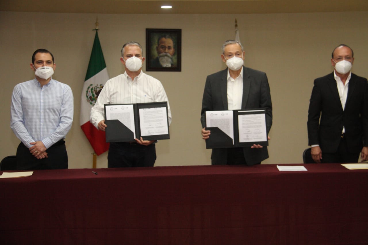 Los secretarios estatales de Educación, Higinio González Calderón, y de Inclusión y Desarrollo Social, Francisco Saracho Navarro, firmaron el convenio de colaboración correspondiente.