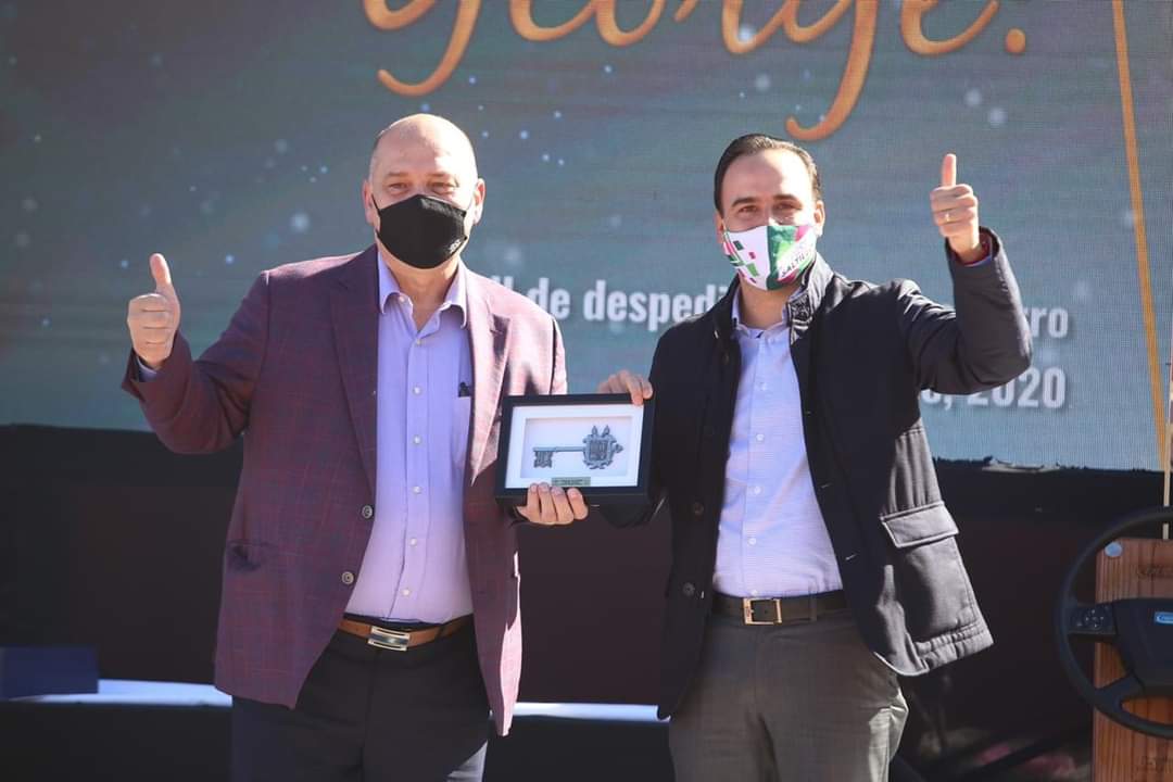 Por ser un embajador de Saltillo en el mundo, y por su trabajo y cariño por la ciudad, George Ferro, Director Planta Daimler Trucks Saltillo, recibió las llaves de la capital coahuilense de manos del alcalde Manolo Jiménez Salinas.