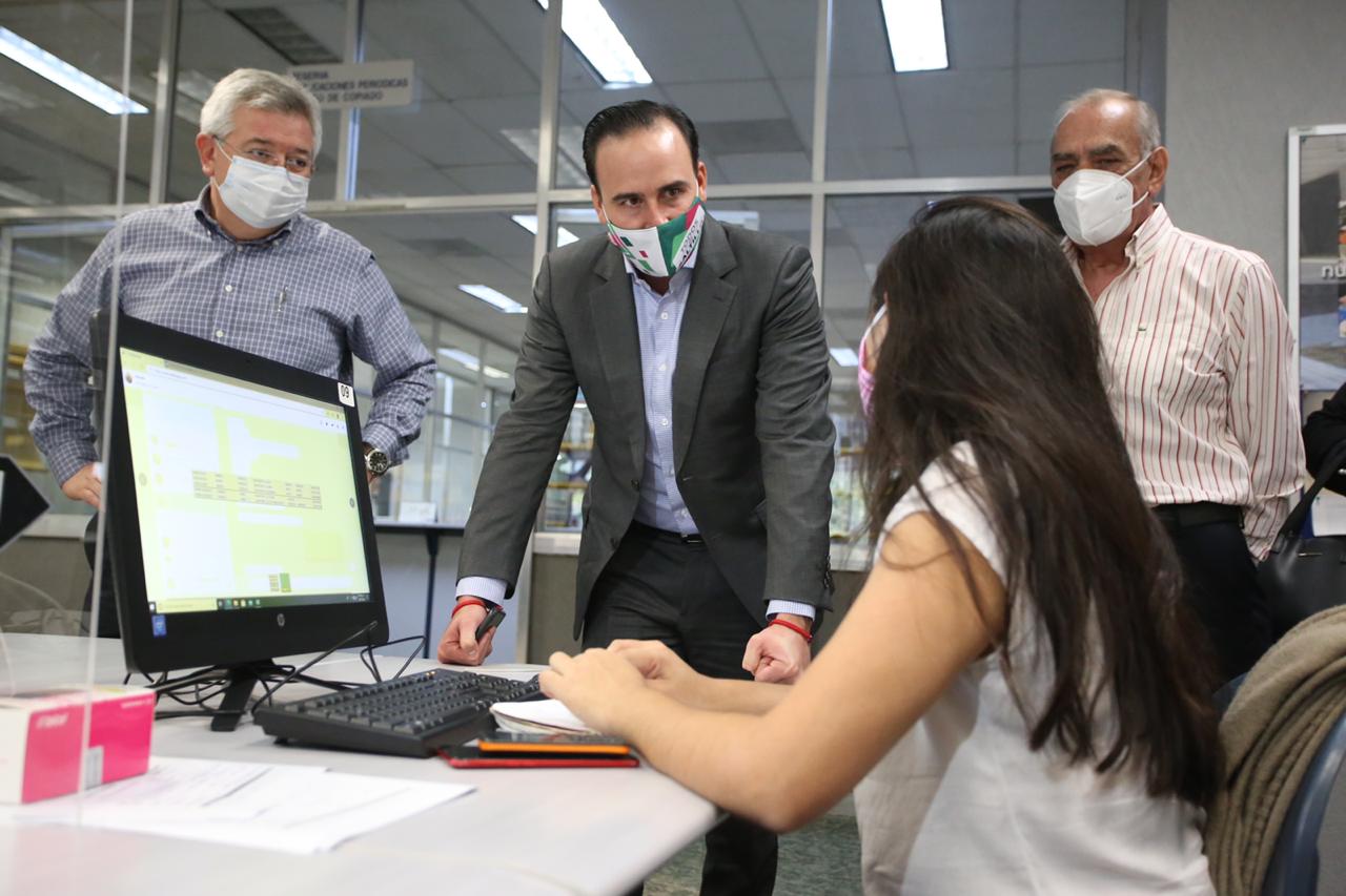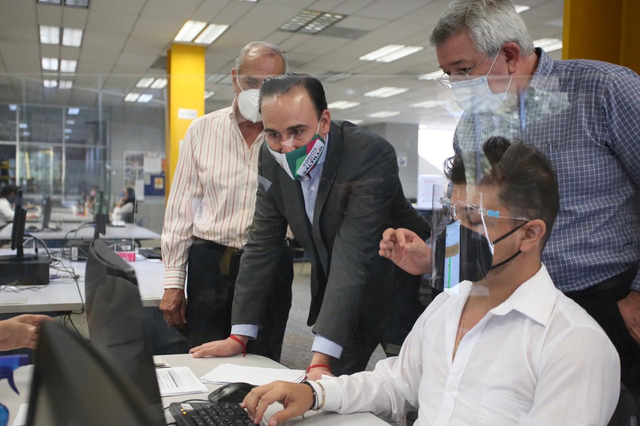 El alcalde de Saltillo, Manolo Jiménez Salinas, supervisó y agradeció la labor que se realiza en el Call Center Estamos Contigo, y los Rastreadores de la Salud, que son algunas de las estrategias que se implementaron en el Subcomité Técnico Regional Covid-19 Sureste, para hacer frente y contener la contingencia sanitaria.