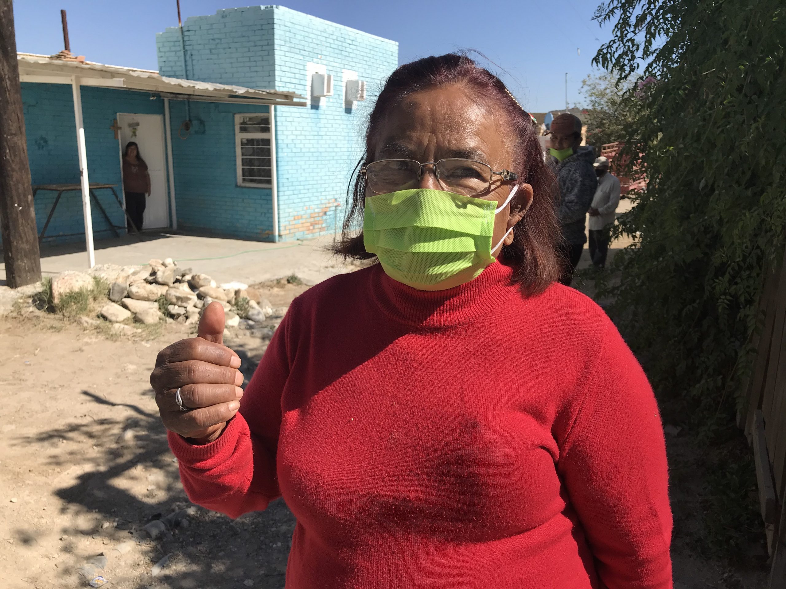 “El alcalde no nos deja solos porque hoy nos trajo el agua y en mejores condiciones, también nos ayuda con el alimento y yo que necesito de medicinas para mi dolor de cabeza también nos ayuda con los medicamentos baratos, le damos las gracias a Chema por lo que hace por nosotros” dijo Elías Flores Ramírez. (EDUARDO SERNA).