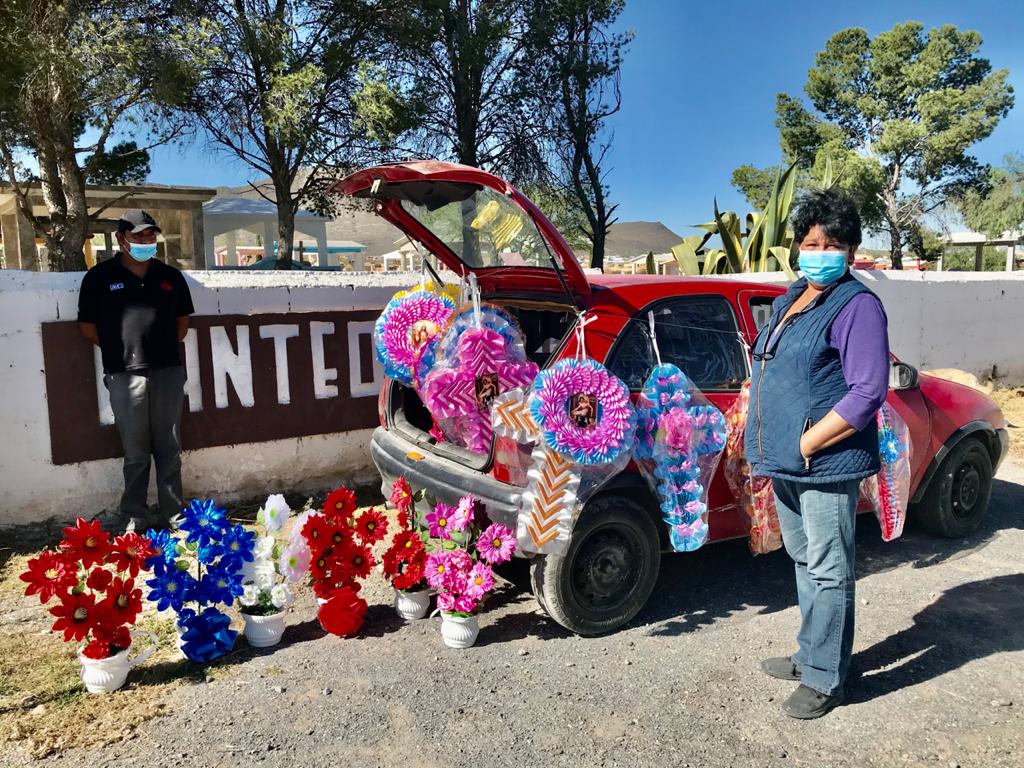 “La venta es muy baja, esto es una inversión que hacemos desde mayo que nos empezamos a preparar porque todo esto es artesanal, desde las flores hasta las coronas, hacemos la inversión del listón, flores y las imágenes, con la esperanza de que se lleguen estas fechas y poder llevar un poco de economía a nuestra casa, pero la pandemia vino a cambiarnos todo” agregó Guadalupe de Lucio Valdez. (EDUARDO SERNA).