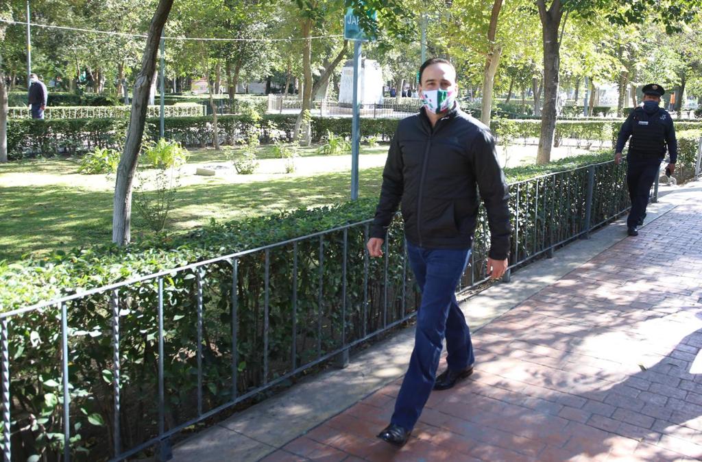 En su recorrido por la Alameda Zaragoza, Jiménez Salinas insistió en que es necesario que exista corresponsabilidad entre sociedad y gobierno para frenar el número de contagios.