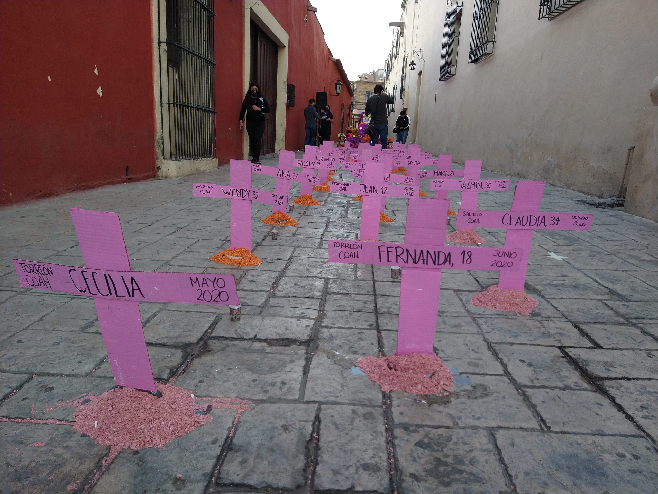 Este sábado, en el callejón Santos Rojo a un costado de Catedral, se inauguró el altar de muertos en memoria de las mujeres coahuilenses que en este año 2020 han sido víctimas de feminicidio en diferentes municipios de Coahuila.