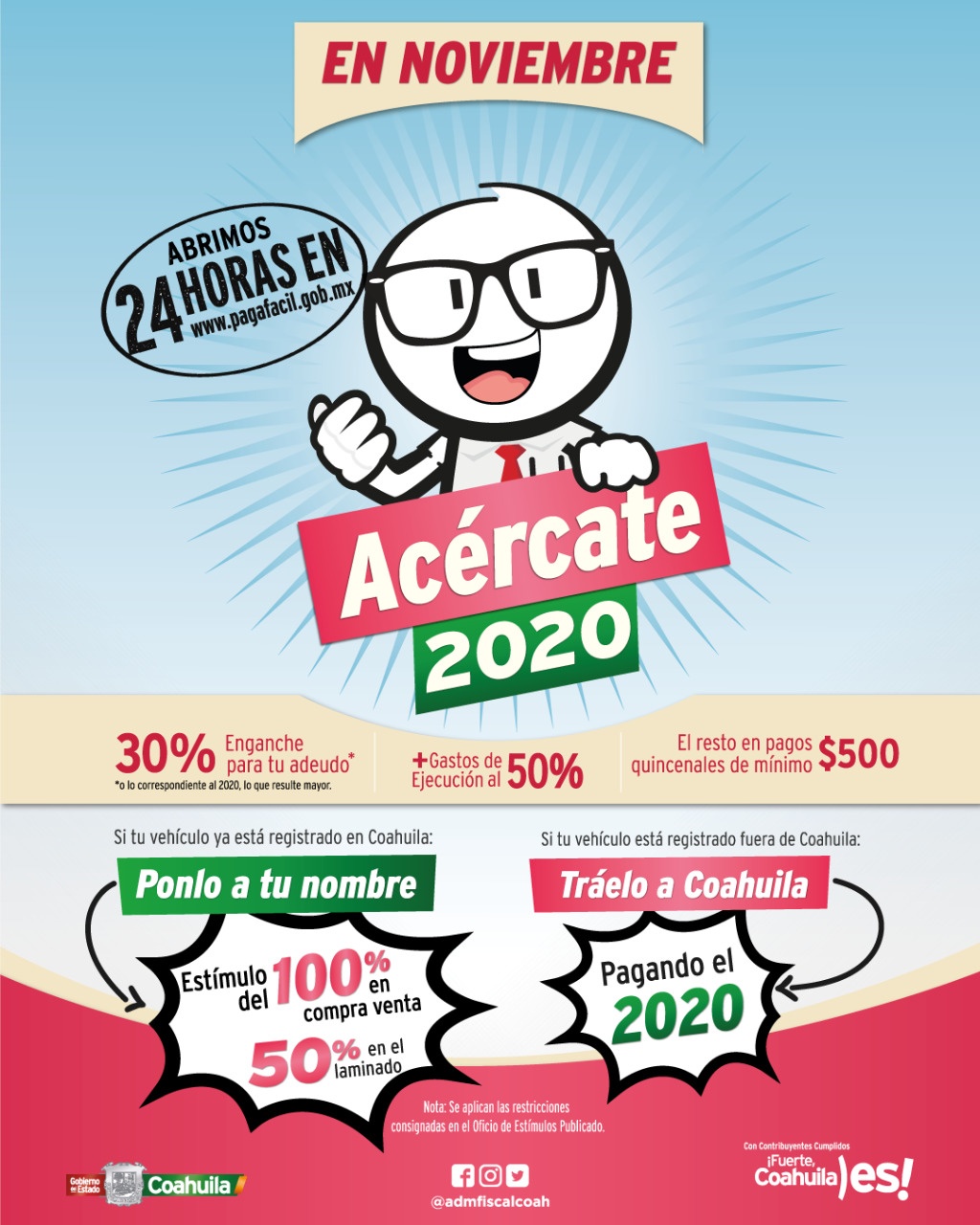 En noviembre aprovecha los diversos estímulos fiscales que el Gobierno del Estado y la Administración Fiscal General (AFG) implementó en apoyo a la economía de los contribuyentes coahuilenses.