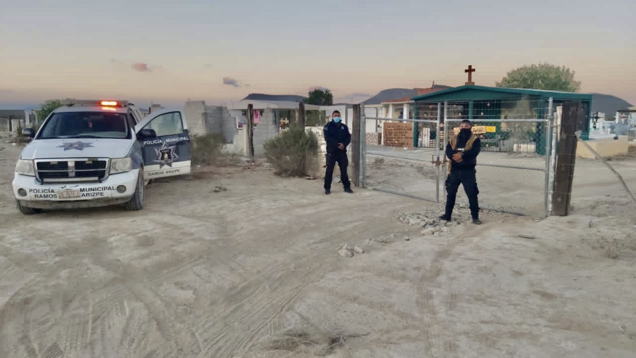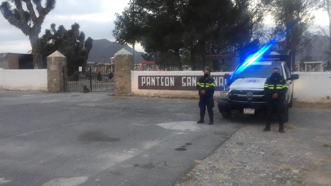 “Tenemos presencia fija en los panteones municipales del área urbana como lo es el de San Nicolás y San Ignacio desde el sábado por la mañana, todo el día tuvimos unidades fijas verificando el cierre de los mismos, así como revisar que no se alterara el orden público, igualmente tuvimos presencia fija en los panteones de Paredón e Hipólito” dijo el director.