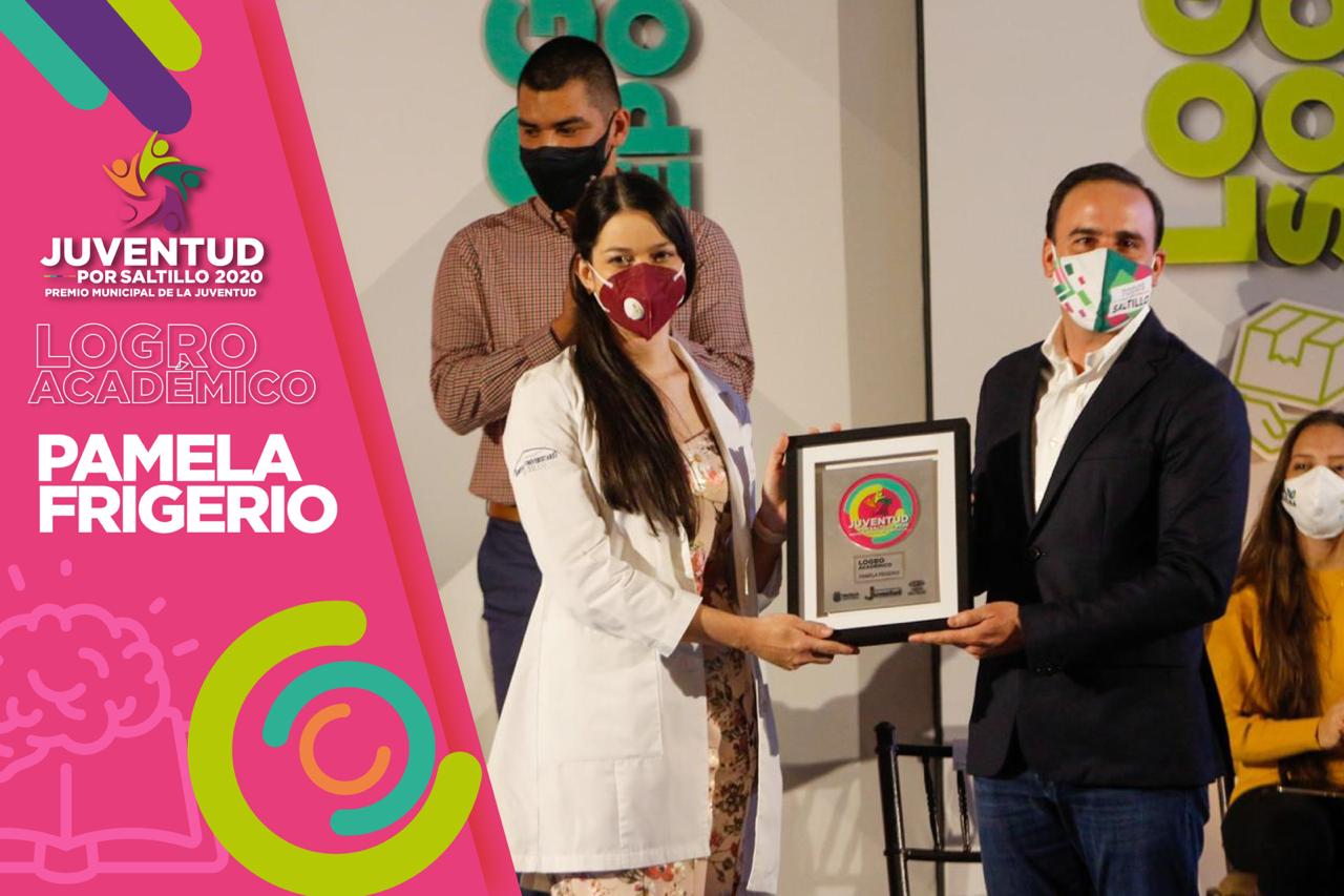Pamela Frigerio, fue premiada por Logro Académico, es médico general y actualmente residente de cirugía general en el Hospital Universitario de Saltillo, quien en esta época de pandemia exhortó a todos a cuidarse mucho.