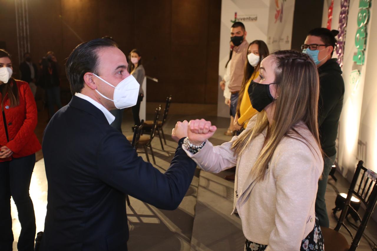 Con todos los protocolos de salud establecidos, el alcalde Manolo Jiménez Salinas entregó el Premio Municipal de la Juventud en su edición 2020 y aseguró que la ciudad tiene presente y futuro gracias a la juventud saltillense.