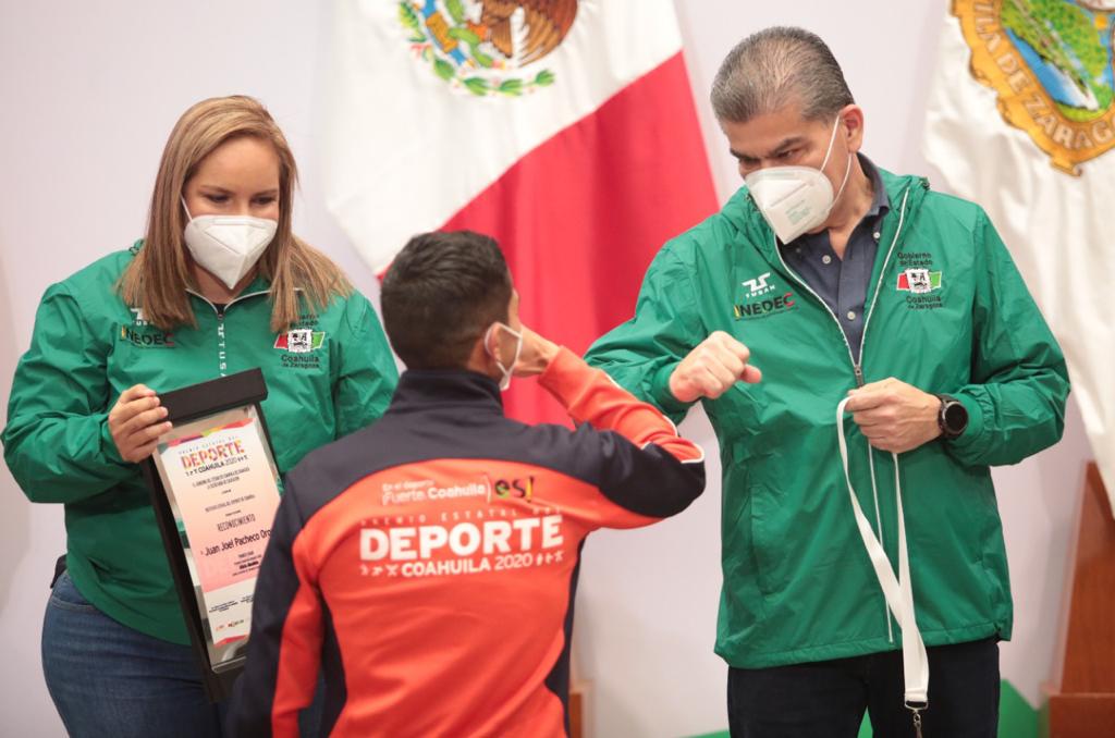 “Les agradezco muchísimo este momento que es histórico para Coahuila; nunca soñamos estar celebrando el Premio Estatal del Deporte en medio de una pandemia, con las consecuencias que hoy tenemos. Pero damos una muestra de fortaleza de lo que somos los coahuilenses, de cómo debemos continuar nuestras vidas al lado del virus”, indicó Miguel Riquelme.