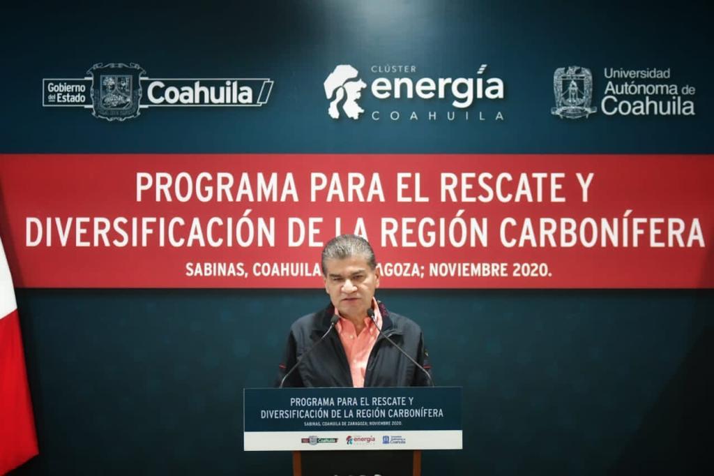 Sabinas.- El gobernador Miguel Ángel Riquelme Solís presentó el “Programa para el Rescate y la Diversificación Económica de la Región Carbonífera”, evento en el que firmó el Convenio de Colaboración entre la Universidad Autónoma de Coahuila y el Gobierno del Estado.