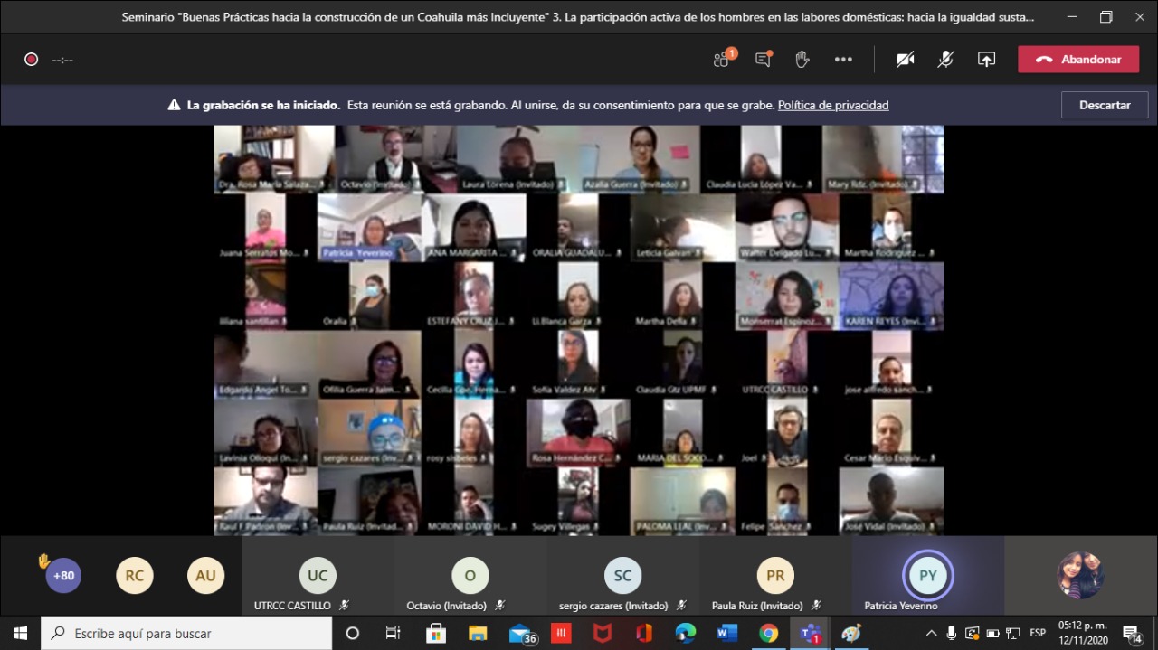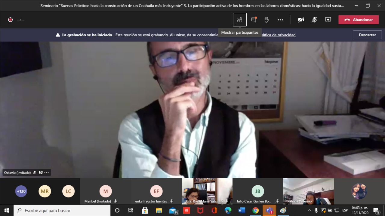 La Secretaría de Inclusión y Desarrollo Social del Estado de Coahuila, a través de la Dirección para Promover la Igualdad y Prevenir la Discriminación (DPIPD), llevó a cabo la tercera sesión del Seminario Virtual “Buenas prácticas hacia la Construcción de un Coahuila más Incluyente”, con el tema “Retos de la participación activa de los hombres en las labores domésticas”.