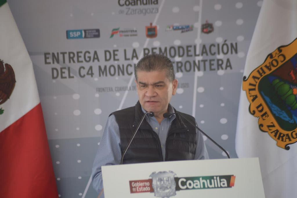Acompañado de la Secretaria de Seguridad Pública de la entidad, Sonia Villarreal Pérez, y los Alcaldes de Monclova y Frontera, realizó la develación de la placa de la modernización de este centro de operatividad policiaca.