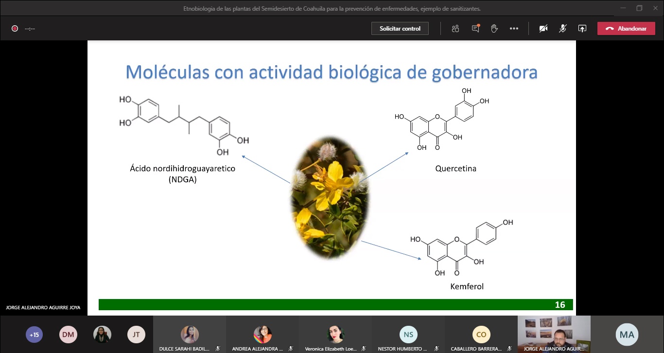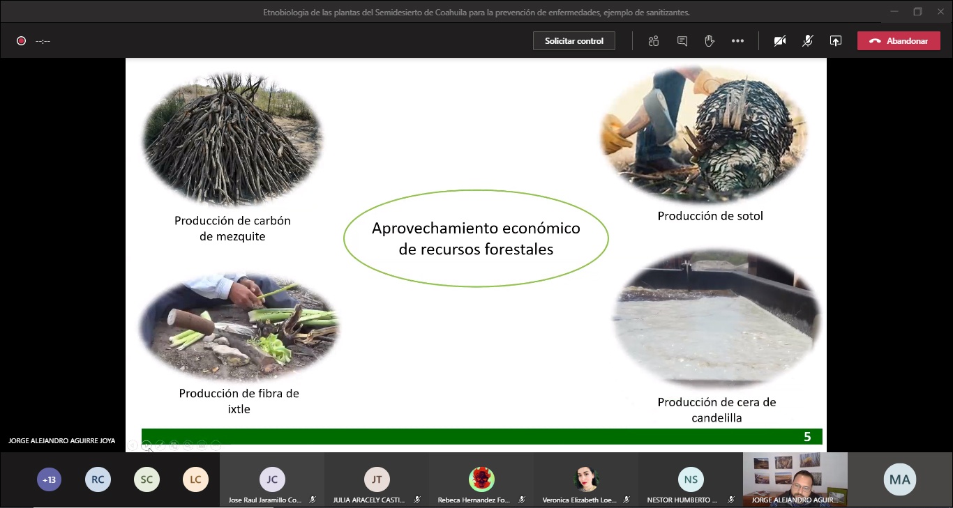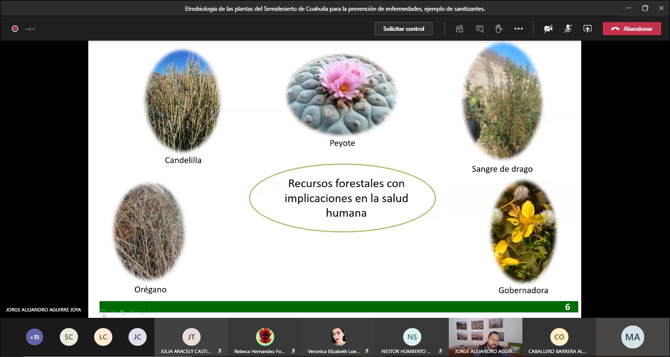 Para brindar herramientas de apoyo a los estudiantes de la Facultad de Enfermería “Dr. Santiago Valdés Galindo” de la Universidad Autónoma de Coahuila, se impartió la conferencia virtual “Etnobiología de las Plantas del Semidesierto de Coahuila para la Prevención de Enfermedades”, a través de Microsoft Teams.