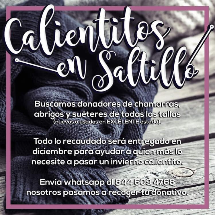 Con el fin de recaudar ropa abrigadora como chamarras, abrigos y suéteres de todas las tallas, Luci Briones Guevara lanzó la campaña «Calientitos en Saltillo» que admitirá prendas nuevas o en buen estado, hasta el próximo 14 de diciembre, para donarlas a personas de sectores vulnerables.