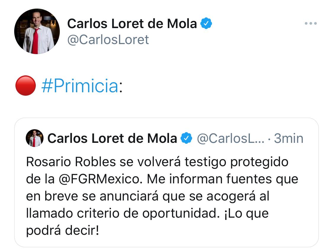Cd. de México.- De acuerdo con diversas fuentes, la ex secretaria de Desarrollo Social, Rosario Robles Berlanga, se convertirá en testigo protegido de la Fiscalía General de la República tras solicitar un criterio de oportunidad,
