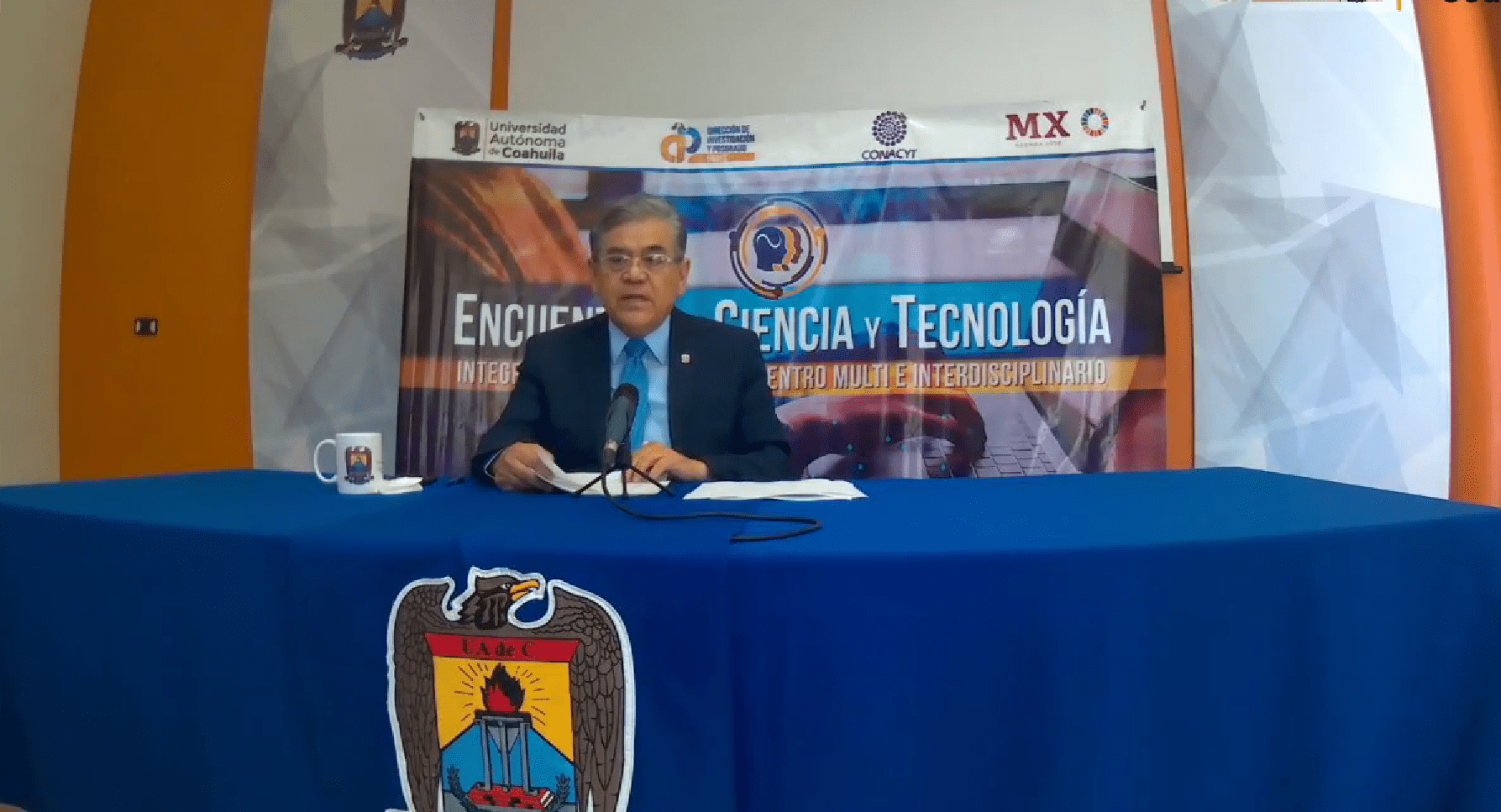 Durante la conferencia plenaria que impartió en el marco del Encuentro de Ciencia y Tecnología 2020, organizado por la Dirección de Investigación y Posgrado de la UA de C, el rector dijo que la pandemia del coronavirus llegó para quedarse, y eso ha aparejado una serie de consecuencias y de problemáticas que deben enfrentar los investigadores para poder continuar y no quedar paralizados pensando que va a suceder.