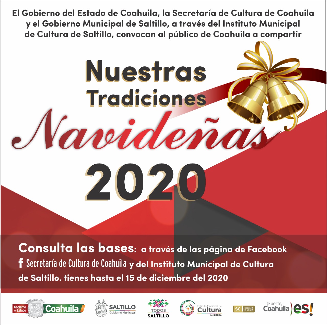 El Gobierno del Estado, la Secretaría de Cultura de Coahuila y el Gobierno Municipal de Saltillo (a través del Instituto Municipal de Cultura) convocan a los coahuilenses a compartir las tradiciones familiares y a participar en el concurso “Nuestras Tradiciones Navideñas 2020”.