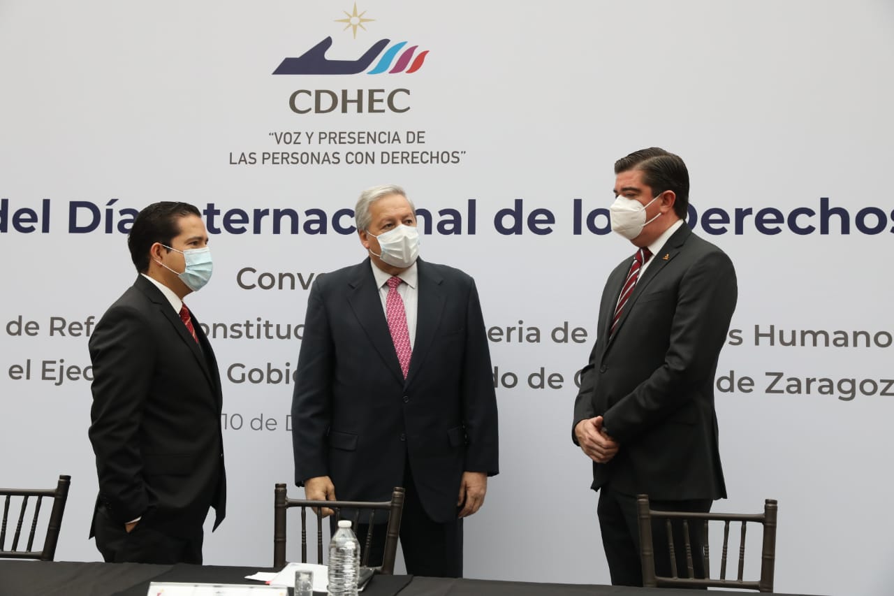 En esta Conmemoración del Día Internacional de los Derechos Humanos, recordó que el pasado 13 de noviembre el gobernador Miguel Ángel Riquelme Solís presentó la iniciativa de Decreto que reforma la Constitución Política del Estado en materia de Derechos Humanos, en la que reconoció la valiosa asistencia técnica de la Academia Interamericana de Derechos Humanos.