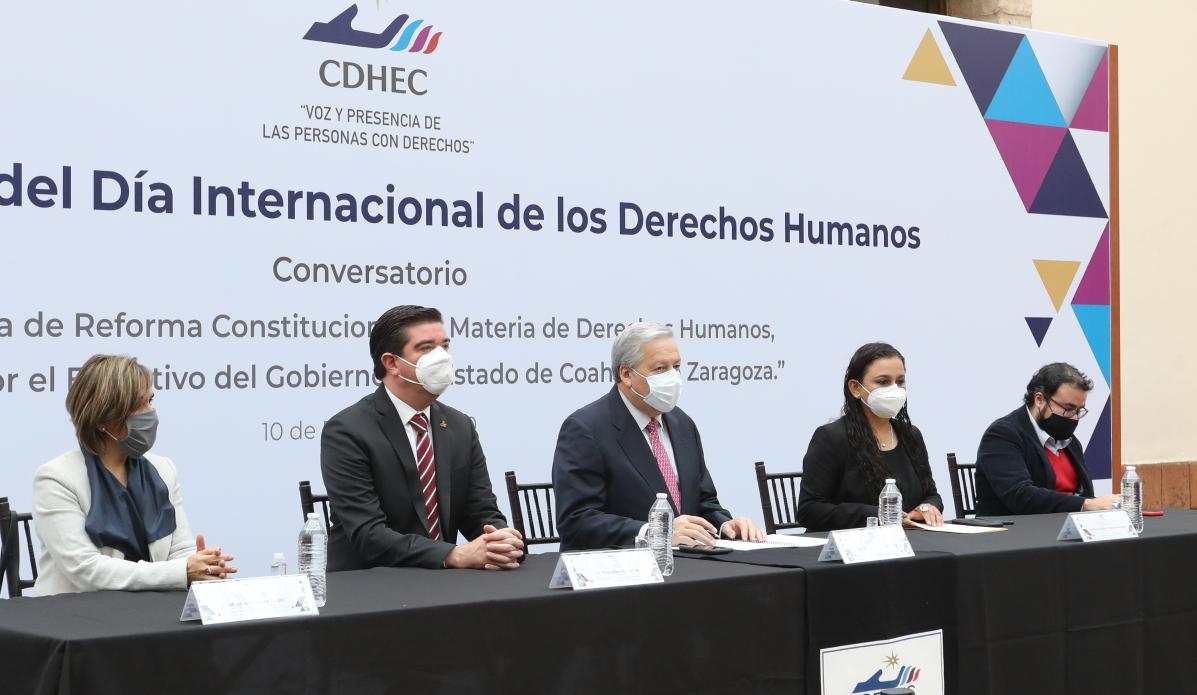 En el marco de la conmemoración del Día Internacional de los Derechos Humanos, la Comisión de los Derechos Humanos del Estado de Coahuila (CDHEC) celebró el Conversatorio “La Iniciativa de Reforma Constitucional en materia de Derechos Humanos, propuesta por el Ejecutivo del Gobierno del Estado de Coahuila de Zaragoza”.